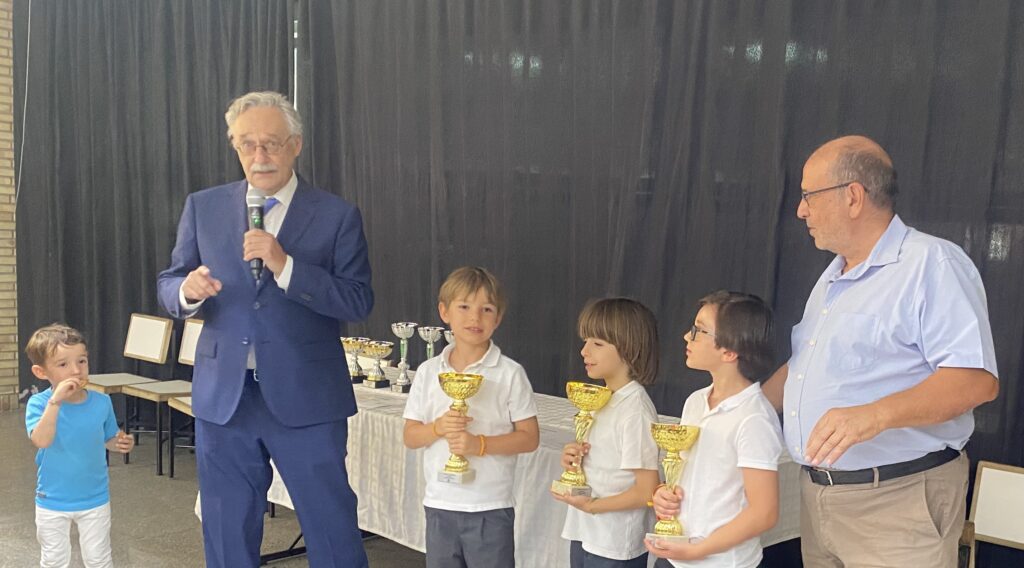 Terminado el curso (Junio-25), se celebra en el comedor del colegio una partida entre familiares y alumnos. Y finalmente, se entregaron los premios correspondientes al X torneo de Primaria.